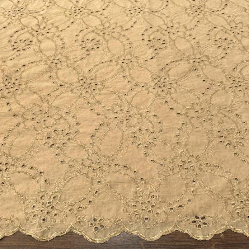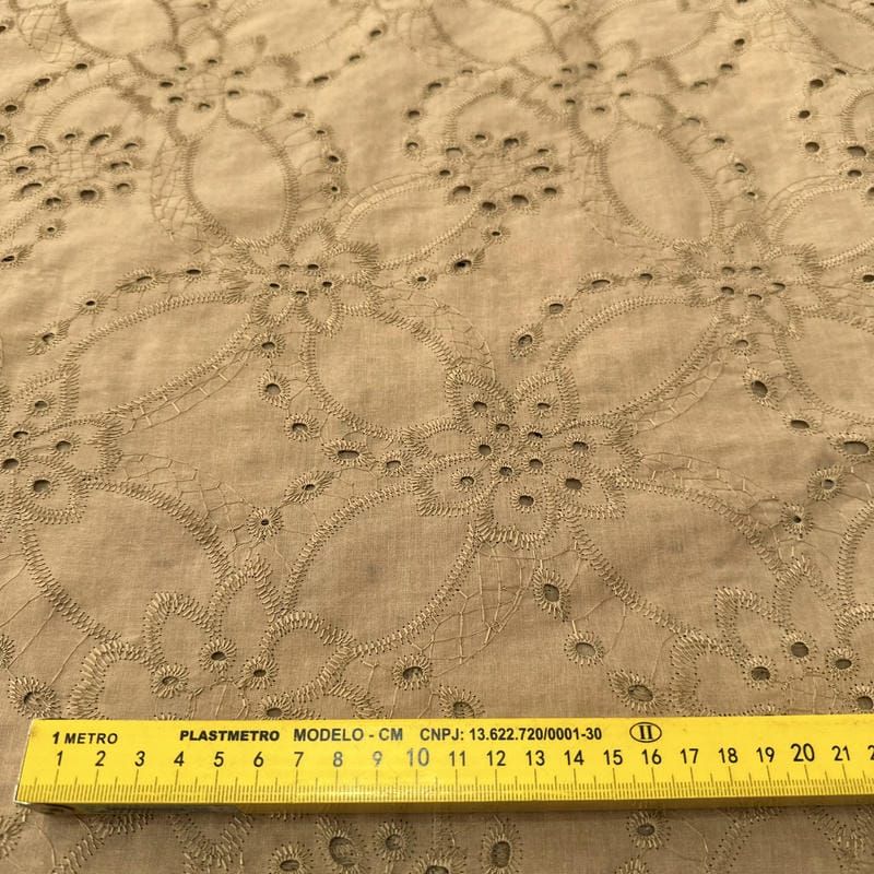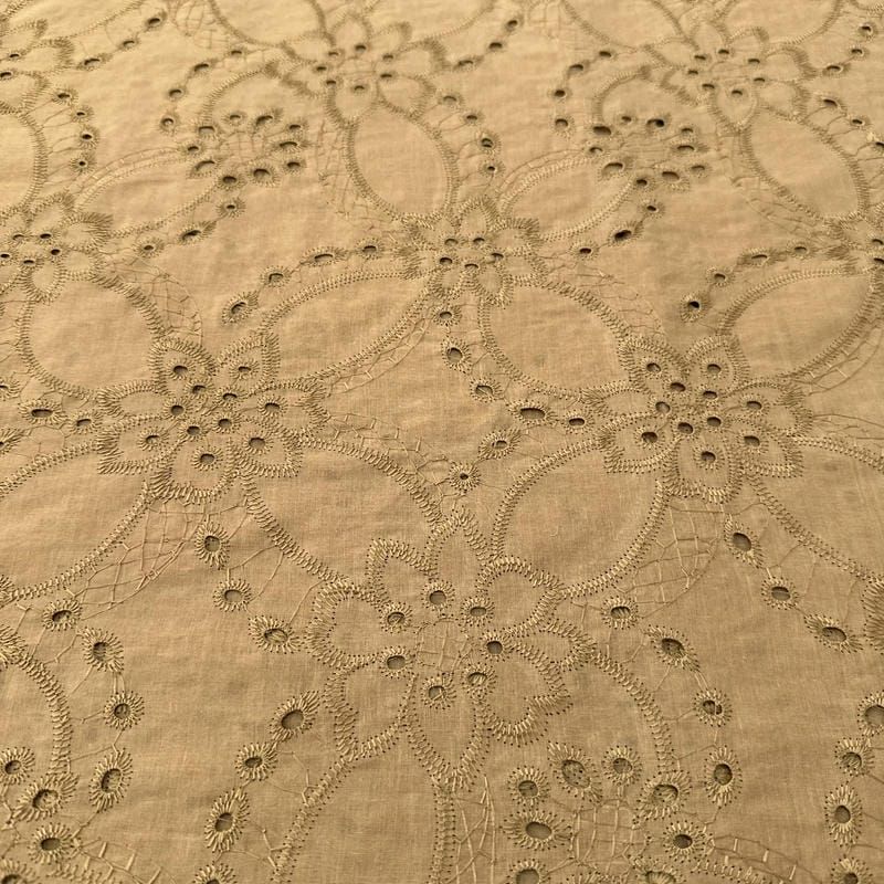 Escolha seu Tecido Laise de algodão Bordada Cáqui Ouro Velho e crie roupas delicadas, femininas e cheias de estilo!