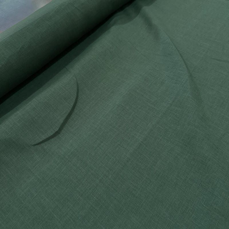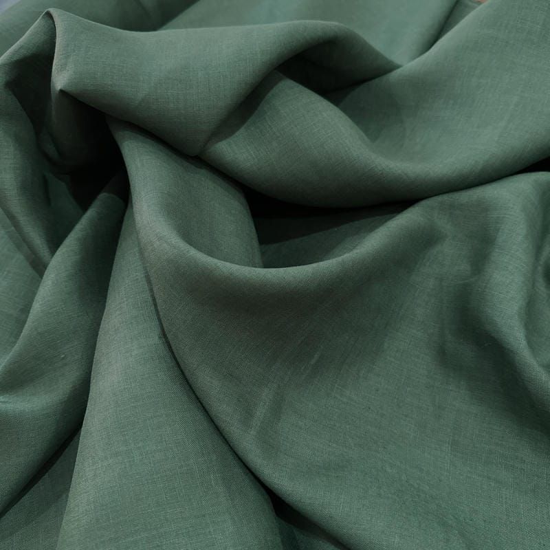 Tecido Linho Puro Verde Militar: natural, leve e perfeito para peças frescas e sofisticadas.