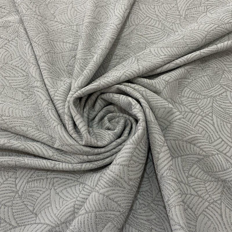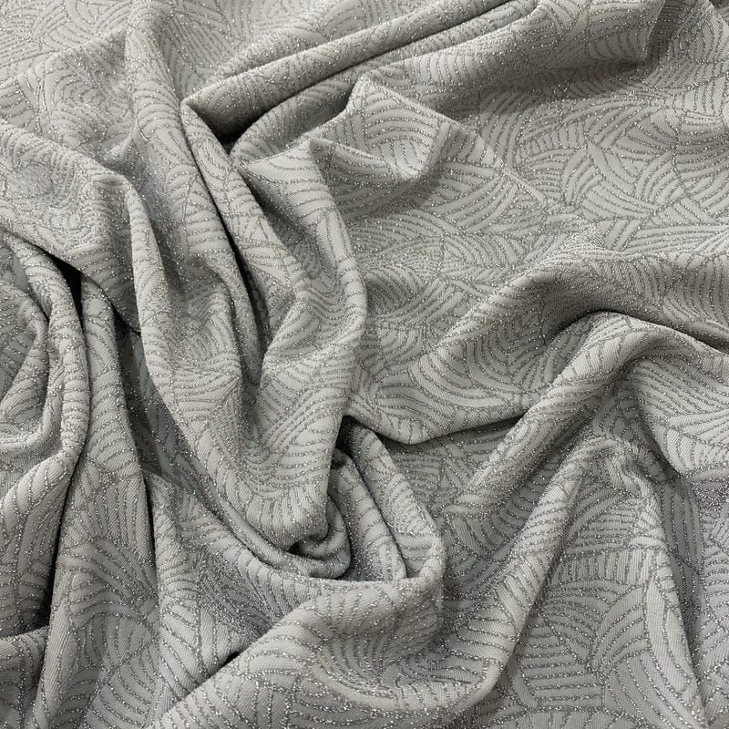 Escolha seu Tecido Malha Lurex Prata Fundo Cinza Claro e crie roupas modernas, brilhantes e cheias de estilo!