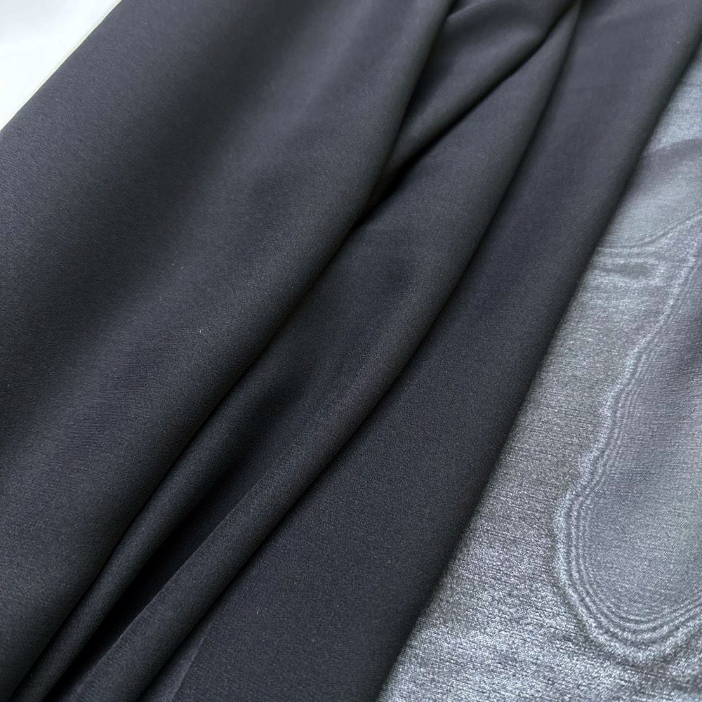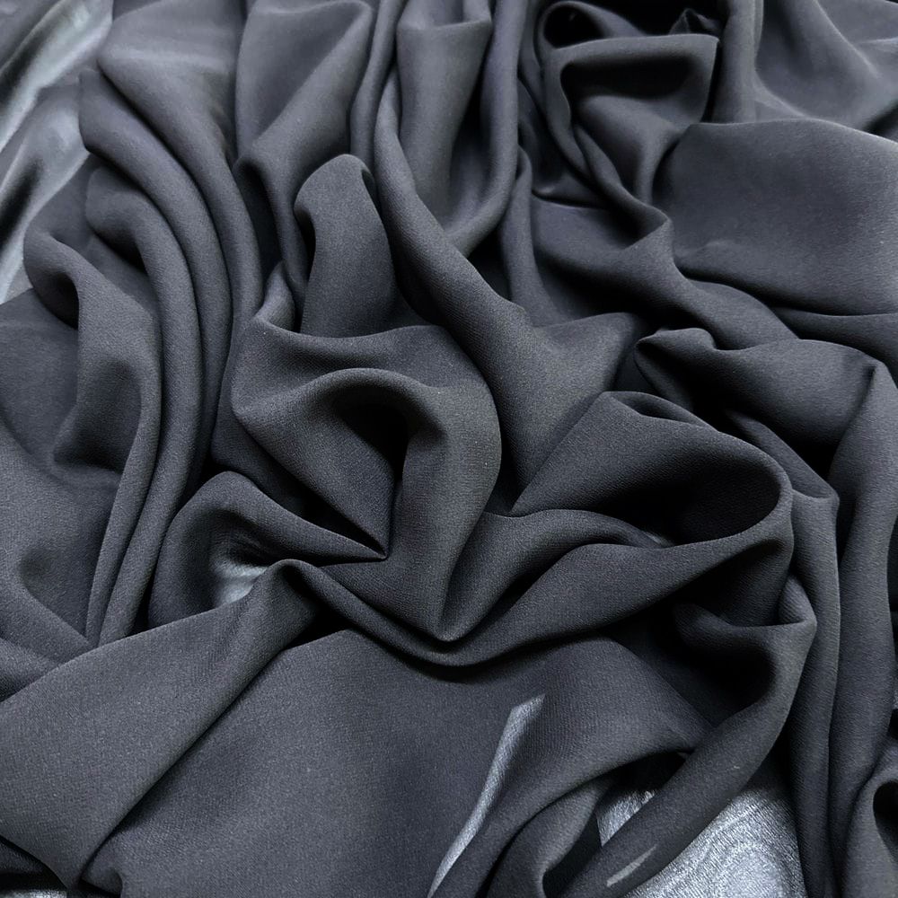 Tecido Musseline de Seda Pura Preto: leve, delicado e ideal para peças fluidas e sofisticadas.