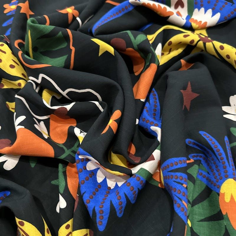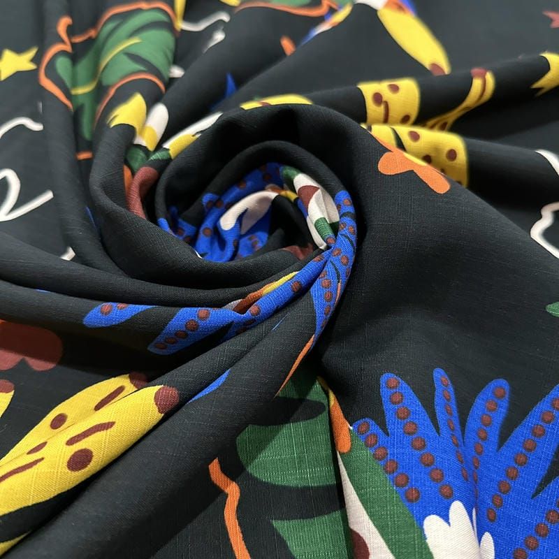O Tecido Viscolinho Estampado Araras Pop Art é um tecido leve e macio, com toque suave e excelente caimento. Produzido a partir de uma mistura de viscose com algodão, oferece respirabilidade e conforto para os dias quentes, sendo ideal para peças que exigem leveza e fluidez. Seu acabamento natural e elegante valoriza qualquer criação.