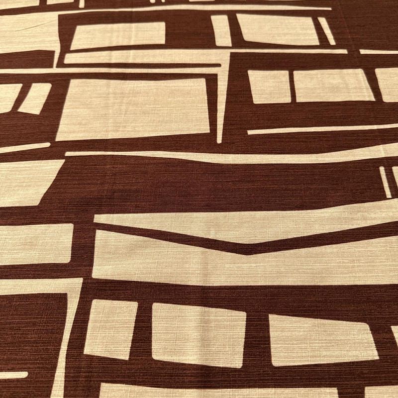Tecido Viscolinho Estampado Fachada Mid-Century: leve, macio e perfeito para roupas confortáveis e estilosas.