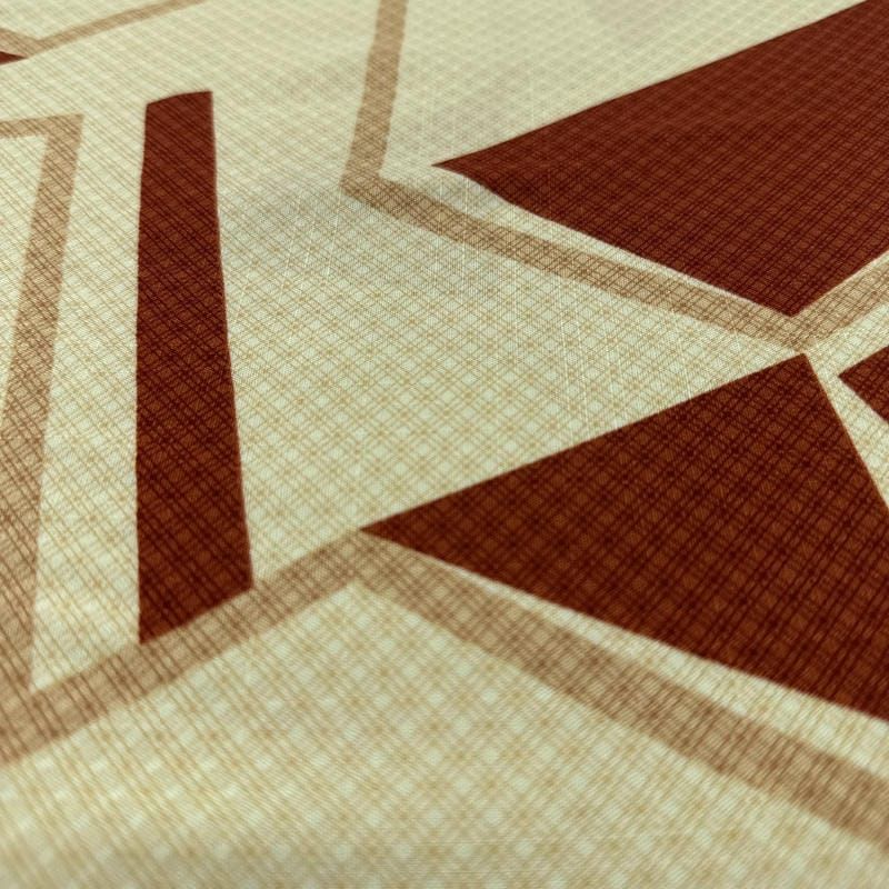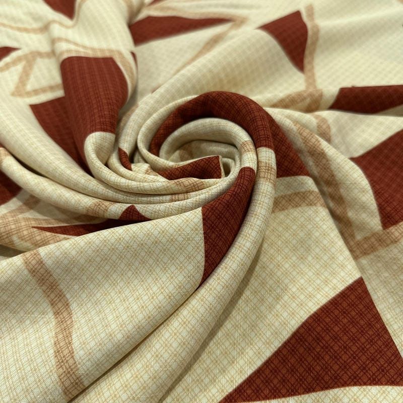 Tecido Viscolinho Estampado Fragmentos Terracota: leve, macio e perfeito para roupas confortáveis e estilosas.