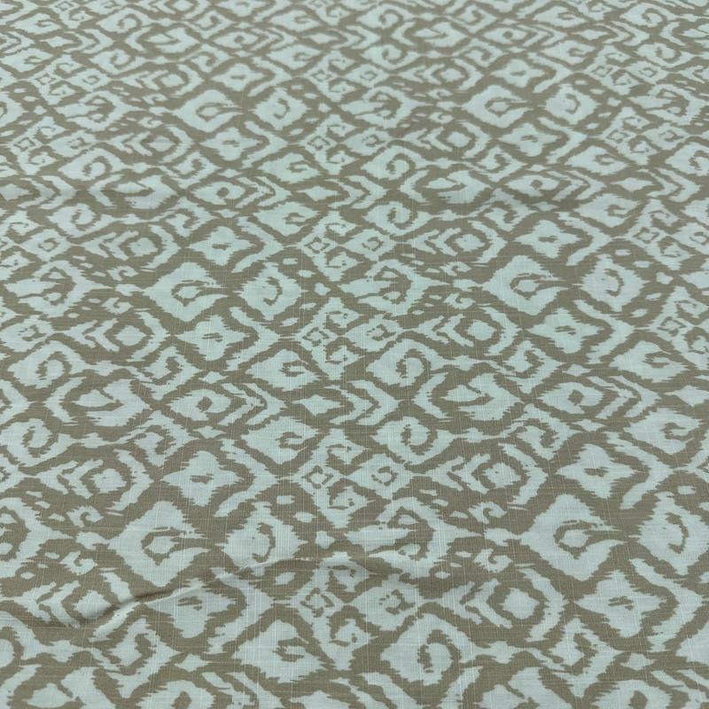 Tecido Viscolinho Estampado Losango Ikat Claro: leve, macio e perfeito para roupas confortáveis e estilosas.