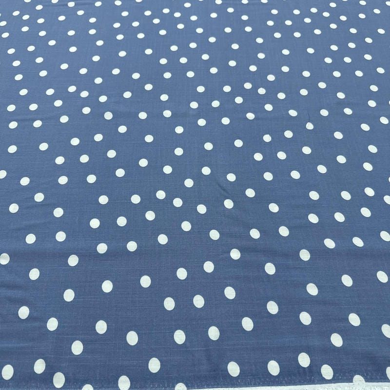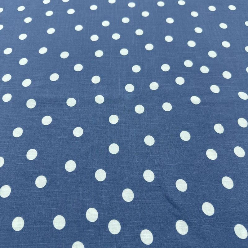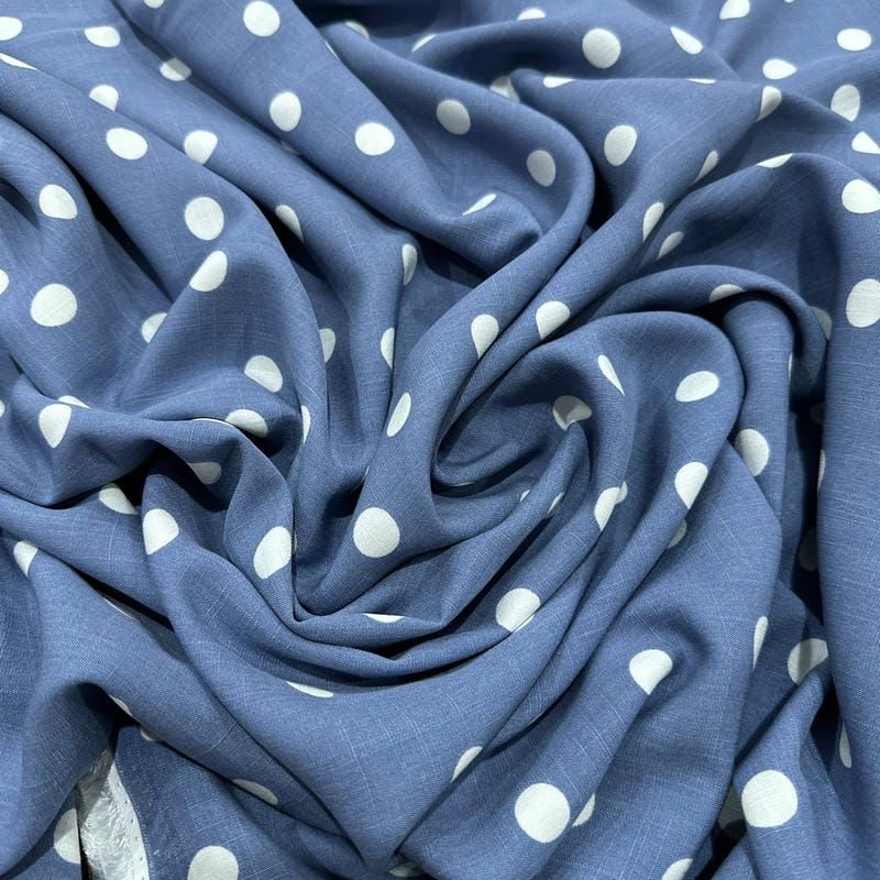 Tecido Viscolinho Estampado Poá Azul Marítimo: leve, macio e perfeito para roupas confortáveis e estilosas.
