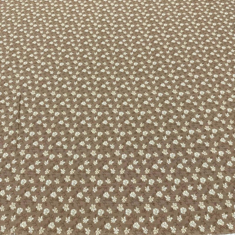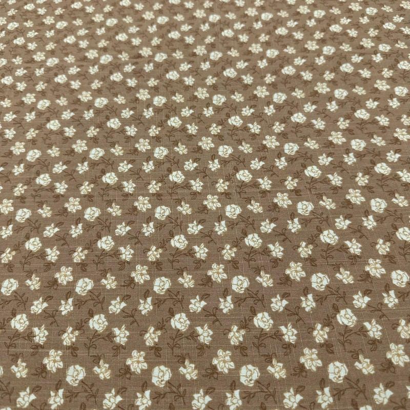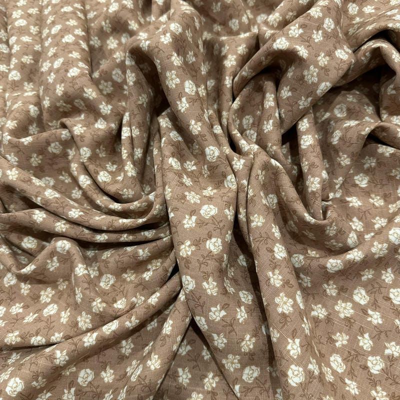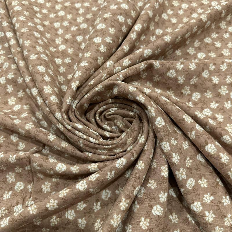 Tecido Viscolinho Estampado Rosário Terroso: leve, macio e perfeito para roupas confortáveis e estilosas.